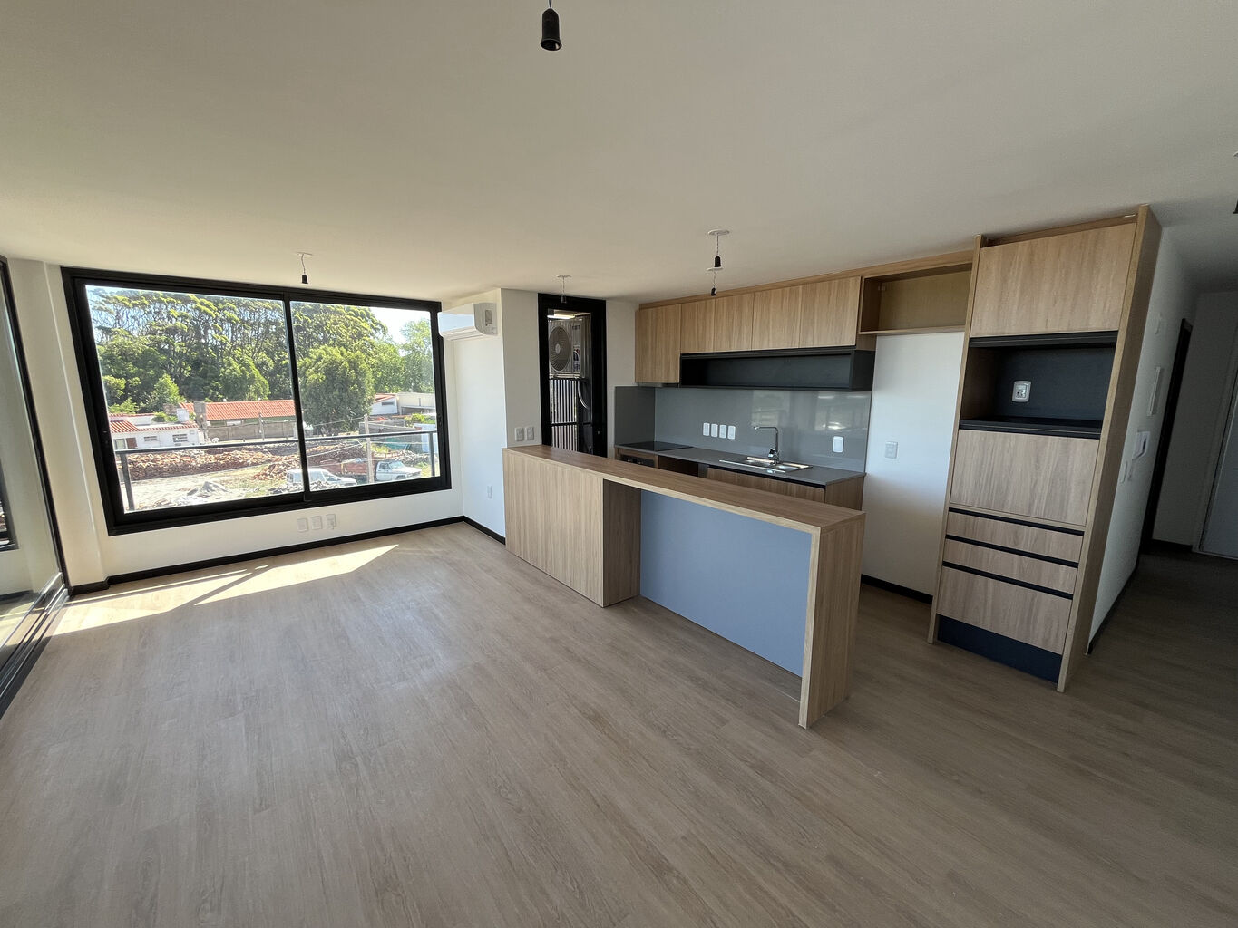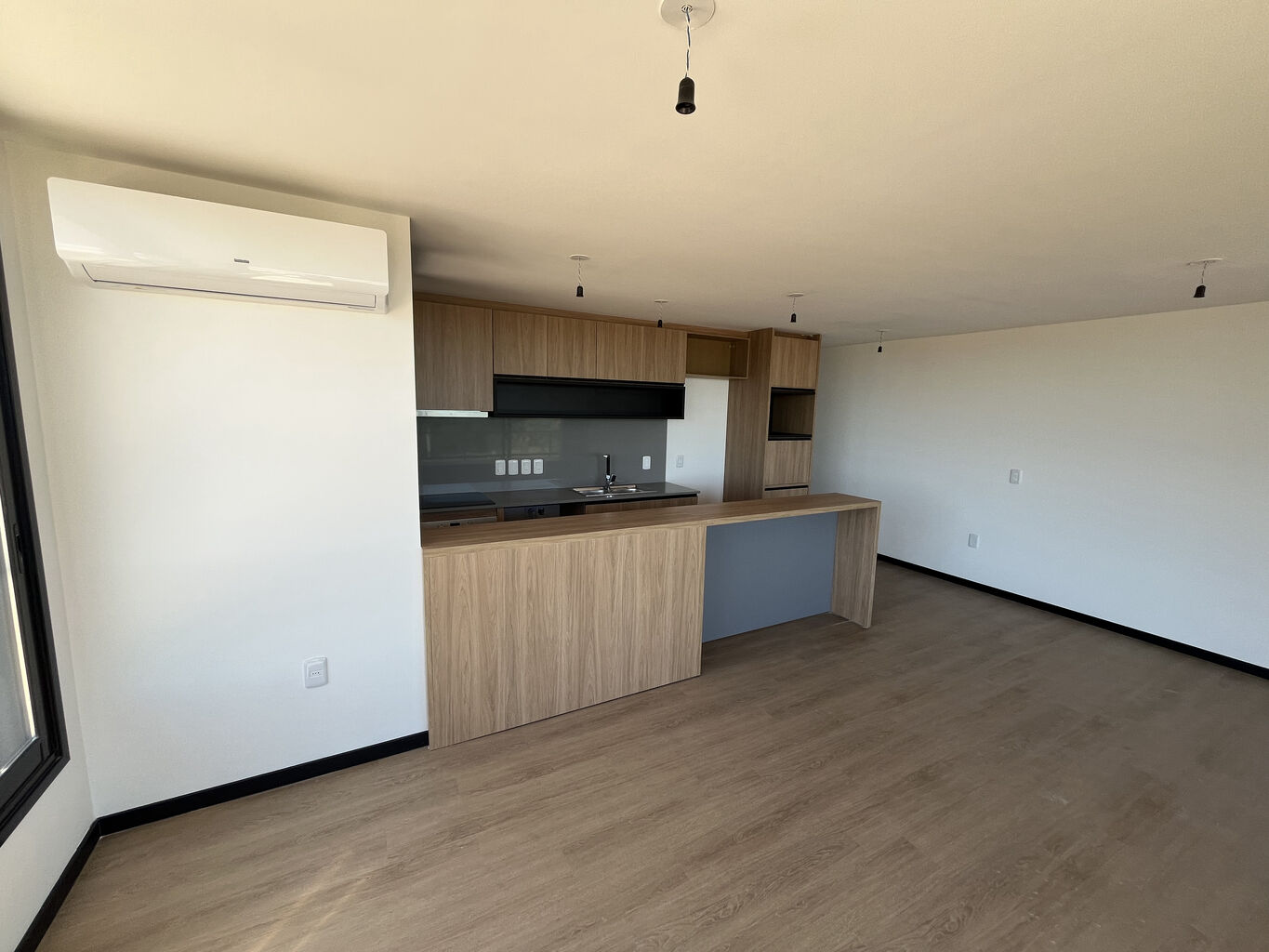 Living-comedor: Espacioso y luminoso, con gran ventanal y aire acondicionado.