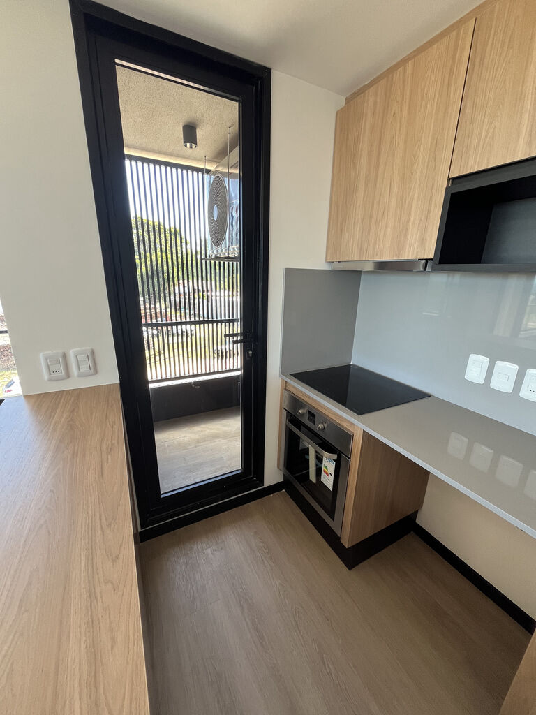 Cocina definida: Con modernos muebles sobre y bajo mesada, campana extractora.